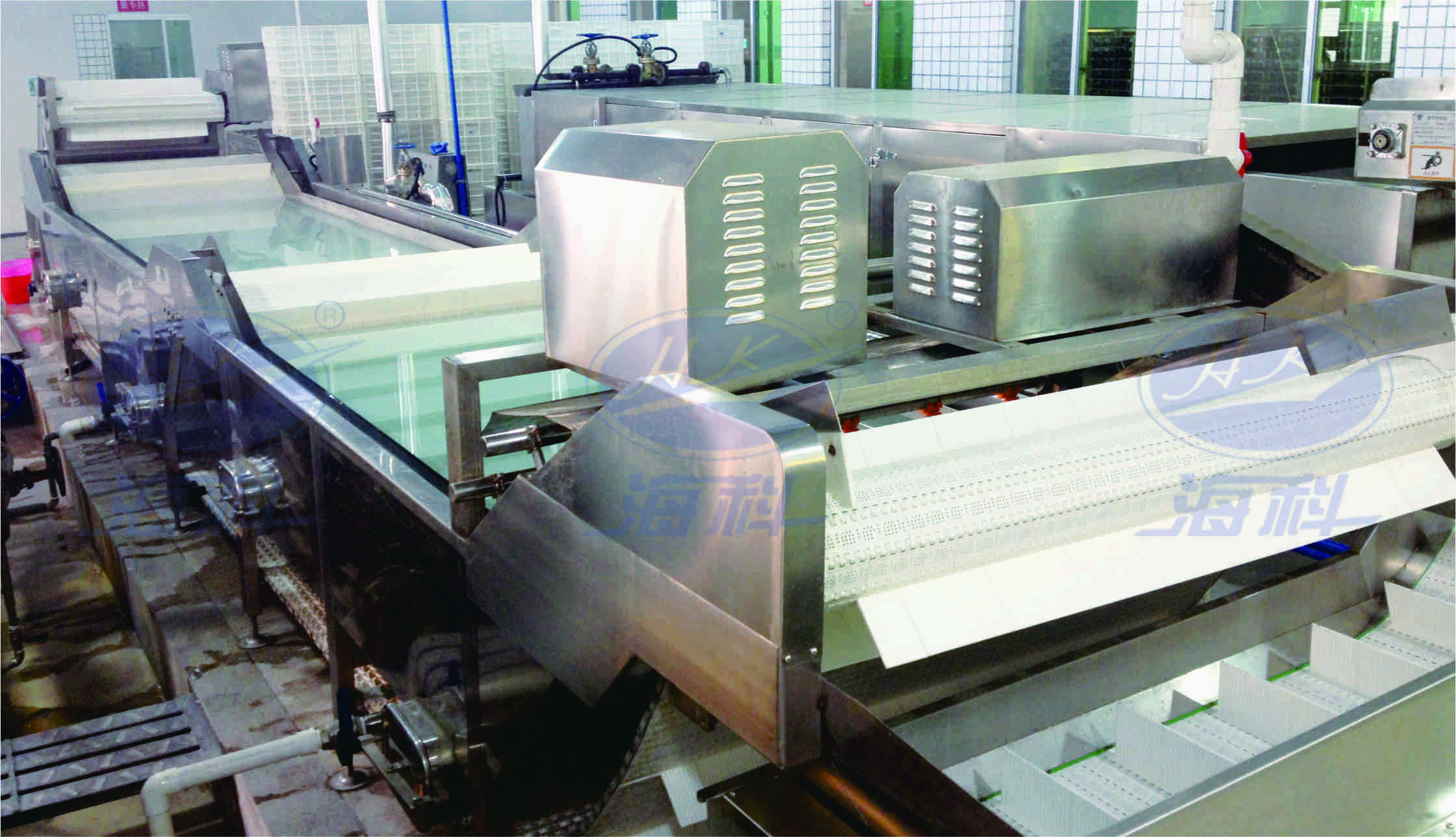 本设备适用青菜、雪菜、蒿菜等叶类盐渍蔬菜的清洗。原料通过鼓泡、冲浪、高压喷淋。经过多级清洗,重质杂物沉入箱底,轻质杂物过滤后提升排放,使原料得到彻底的清洗。可针对不同的物料和清洗要求多级组合配套。本设备采用进口优质全不锈钢制造,自动化程序高,操作方便,生产能力