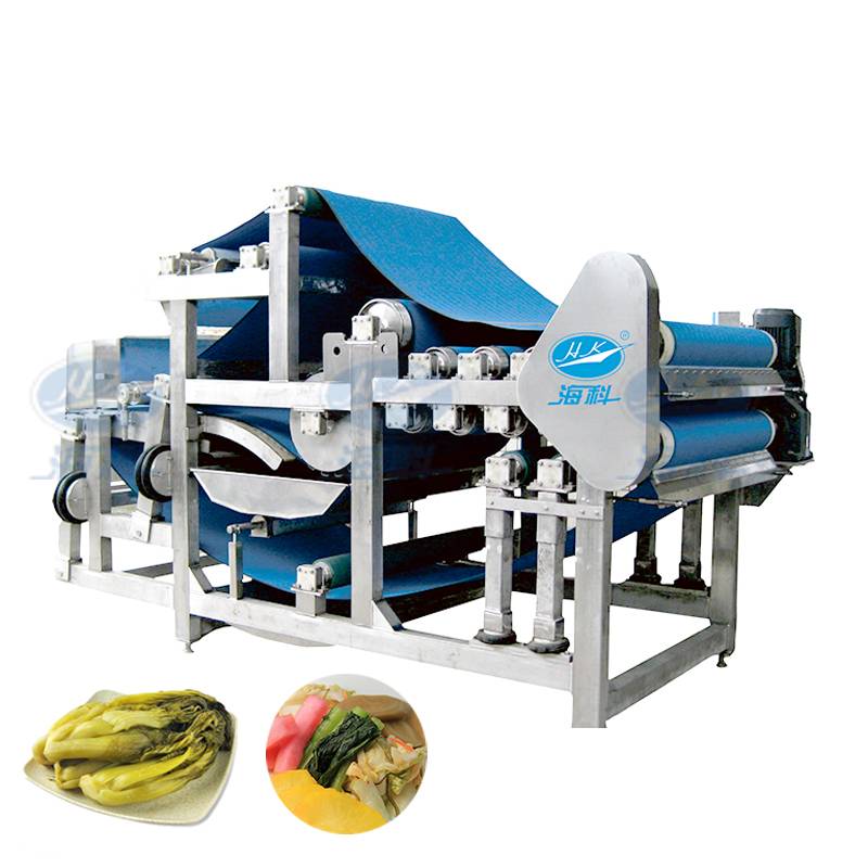 本设备采用机械压榨方式,连续脱去经腌制过后蔬菜类的内部水分,特别适用于酱菜行业脱水使用。